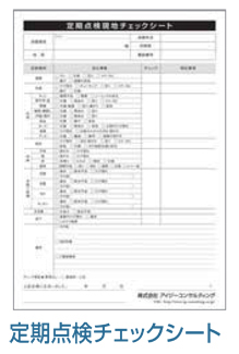 ご自宅にお伺いし、チェックリストに基づき点検を行います。 点検時間は1時間半程度となります。チェックシートに点検した内容を 記入し、お渡しします。