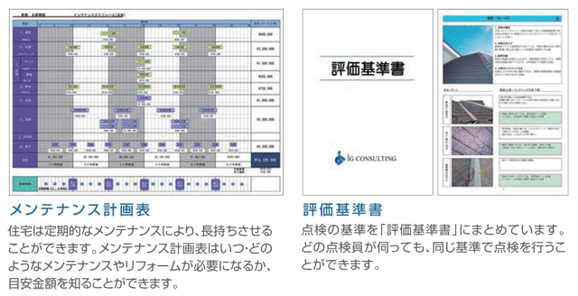 住宅メンテナンスに関しての説明を行います。 規定のメンテナンス計画表・評価基準書を用いてアドバイスいたします。